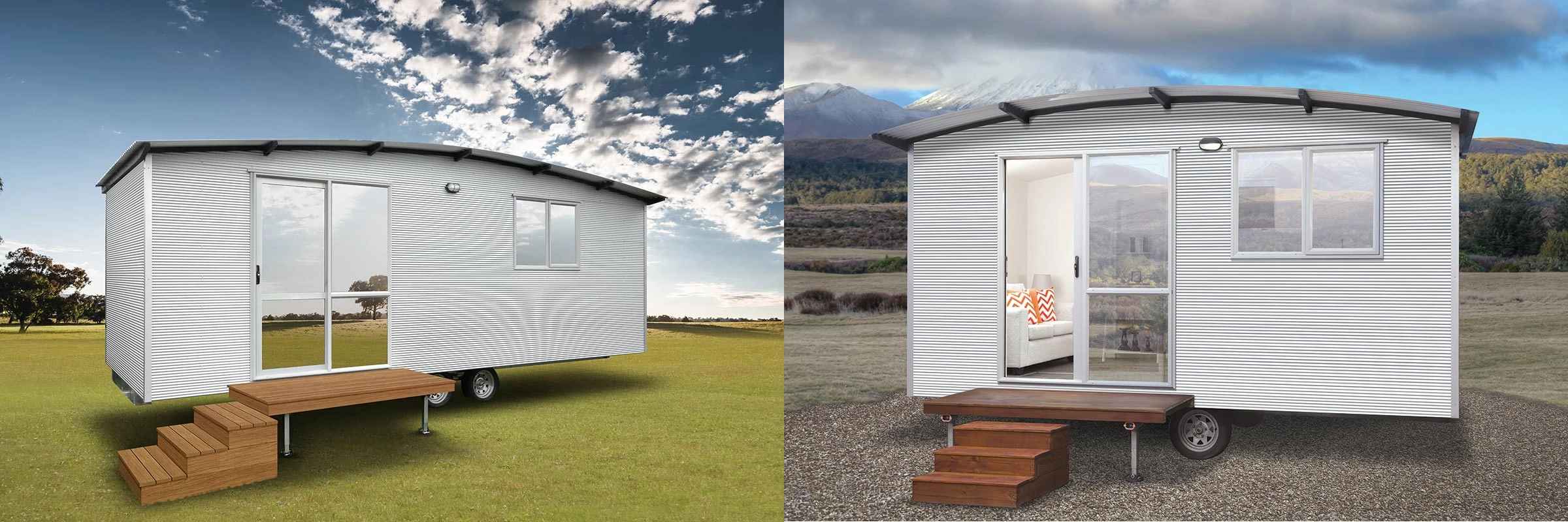 - Curved, stylish, corrugated Mini Orb Zinc cladding.